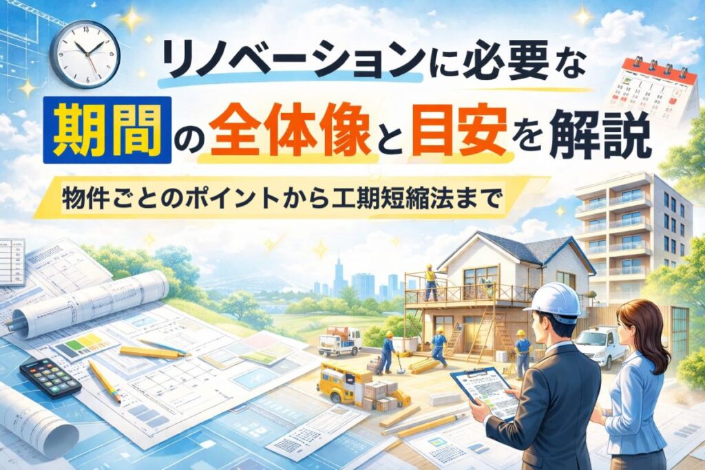 住みながらの工事や部分リノベーションの場合、工期は短縮できますが、フルリノベーションでは仮住まいが必要な場合が多く、賃貸物件の場合は空室期間や募集タイミングにも影響します。